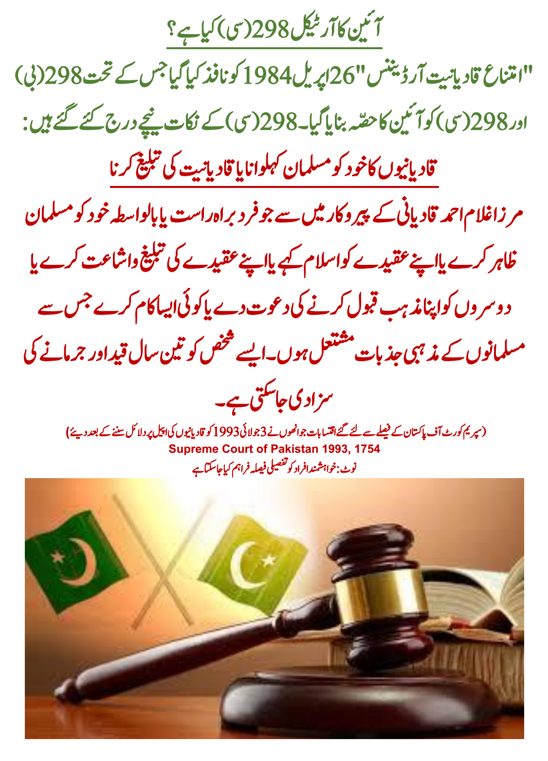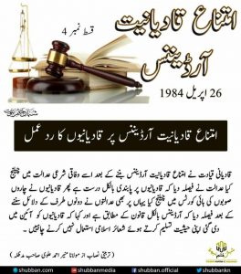 قادیانیوں کو شعائر اسلامی، قادیانیت کی تبلیغ اور اپنے آپ کو مسلمان کہلانے سے روکنے کے لئےجنرل ضیاء الحق نےایک آرڈیننس جاری کیا جس کے تحت آئین میں دو شقوں یعنی 298(بی ) اور 298(سی ) کا اضافہ کیا گیا۔