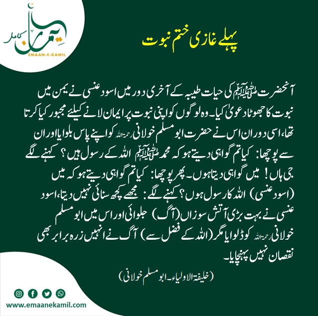 Khatm-e-Nubuwwat ﷺ means that Prophet Muhammad ﷺ is the Last of the Prophets. The process and routine of appointing Prophets and Messengers by Almighty Allah has been terminated, finished, ended, stopped, and sealed. None will be appointed as prophet after Prophet Muhammad ,ﷺ His prophethood will continue until the judgement day and the day after. Only that person can claim to be a Muslim who believes in Khatm-e-Nubuwwat
